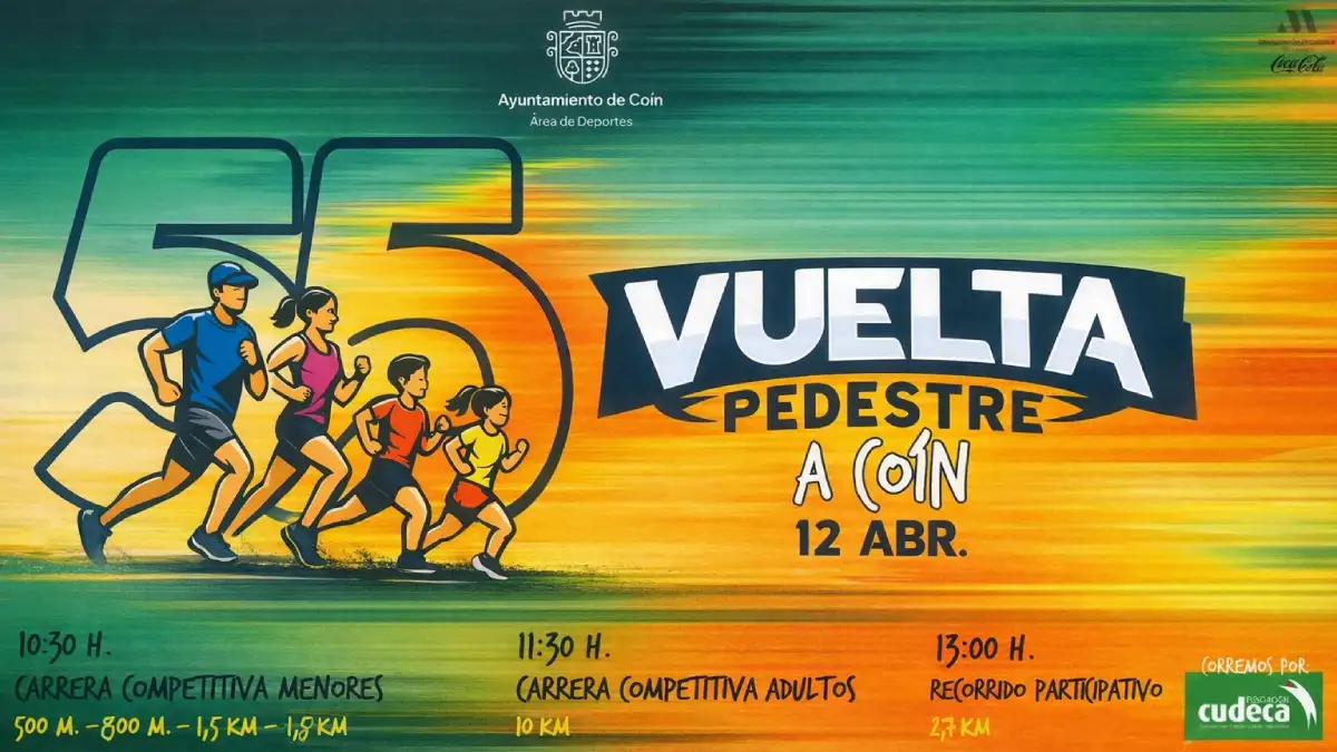 La 55 Vuelta Pedestre a Coín 2026 volverá a llenar de deporte y ambiente festivo las calles de la ciudad con carreras competitivas de menores y adultos, además de un recorrido participativo solidario a favor de la Fundación Cudeca.