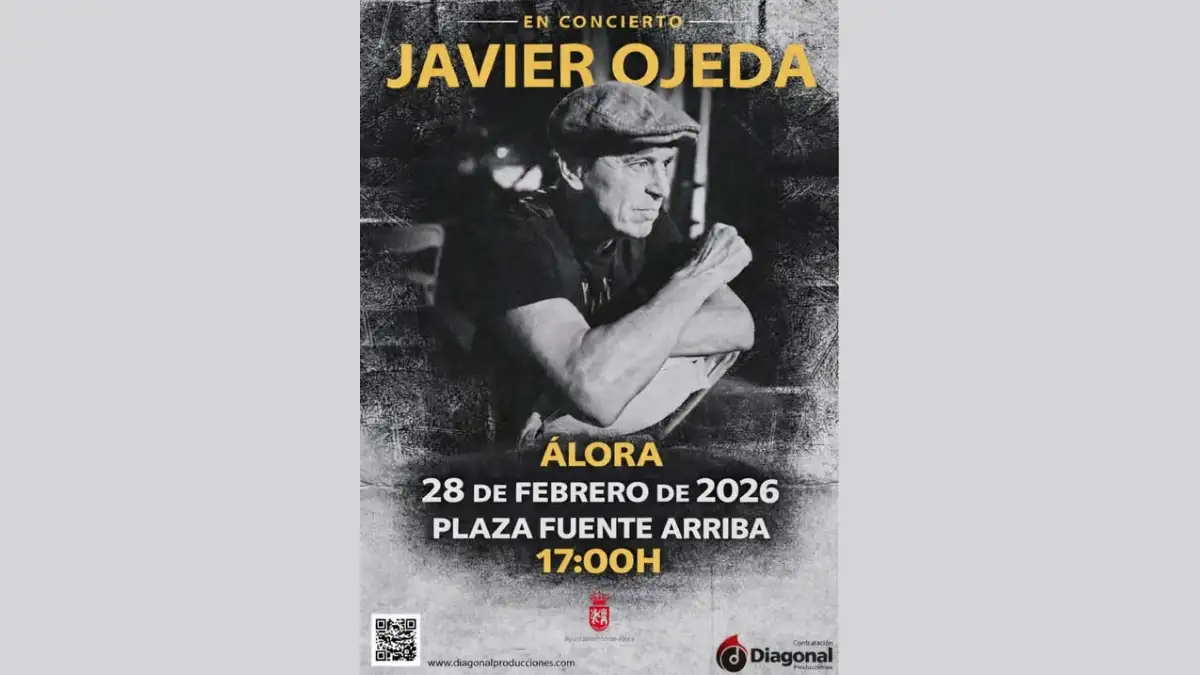 El cantante malagueño Javier Ojeda actuará este 28 de febrero a las 17:00 en la Plaza Fuente Arriba de Álora para celebrar el Día de Andalucía. Será un concierto vespertino, al aire libre y en pleno centro del municipio, pensado para que familias, cuadrillas de amigos y público de todas las edades se acerquen a cantar y bailar en una jornada festiva. Actualizado a 5 de febrero de 2026.