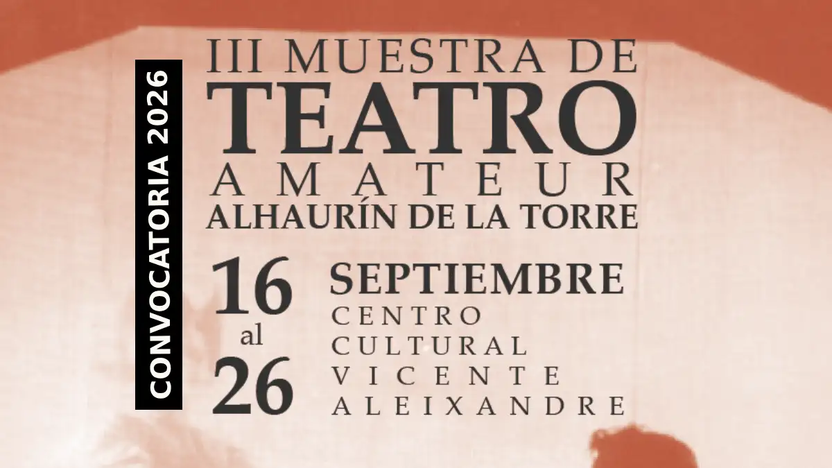 El Ayuntamiento de Alhaurín de la Torre ha abierto la convocatoria para la III Muestra de Teatro Amateur 2026, una cita que busca promocionar la cultura escénica entre grupos aficionados de la provincia de Málaga y el Valle del Guadalhorce. La propuesta se desarrollará del 16 al 26 de septiembre en el Centro Cultural Vicente Aleixandre, con sesiones de miércoles a sábados dirigidas a todo el público de la zona.