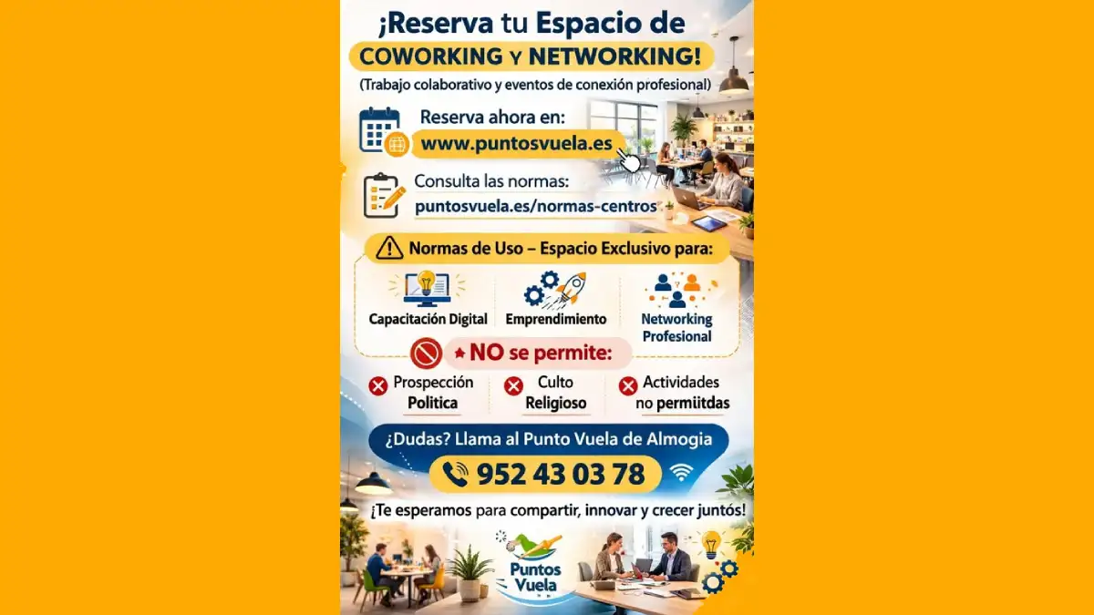 El Punto Vuela Almogía no solo ofrece espacios, sino un ecosistema para aprender, colaborar y crear en el Guadalhorce. ¿Listo para tu próximo contacto profesional? Reserva hoy y únete a la red de oportunidades locales.