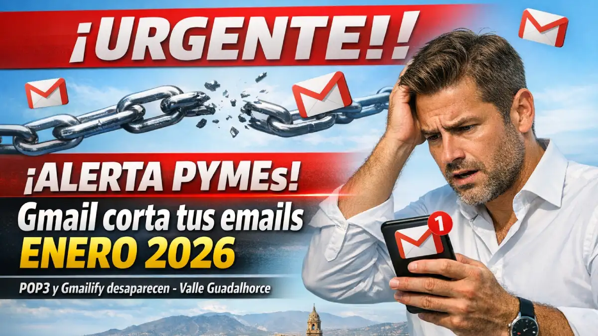 En el Valle del Guadalhorce, muchas pymes usan el truco POP3 para ver emails de su hosting (cPanel/HestiaCP) directamente en Gmail gratis. Desde enero 2026, esos emails nuevos NO llegarán a Gmail web.