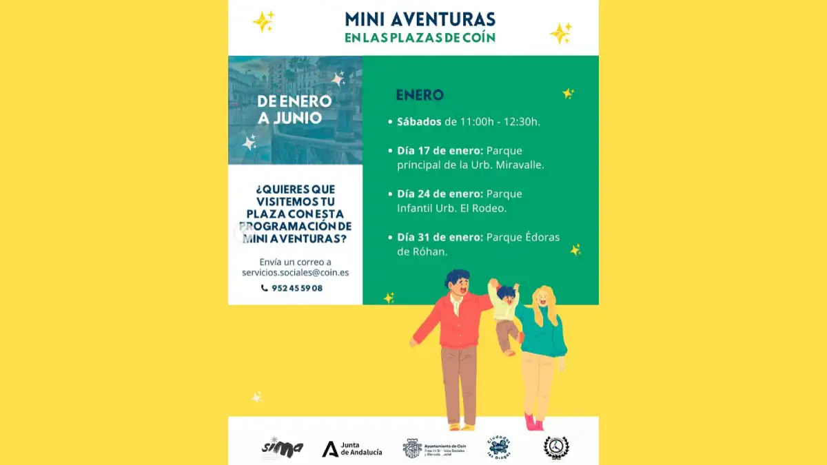 Coín despierta los sábados con risas infantiles y de adultos en sus plazas. El área de Servicios Sociales del Ayuntamiento lanza las “mini aventuras”, una propuesta gratuita que llena de ocio saludable las vías públicas. Monitores especializados dirigen juegos y dinámicas cada semana en un enclave distinto de la ciudad.