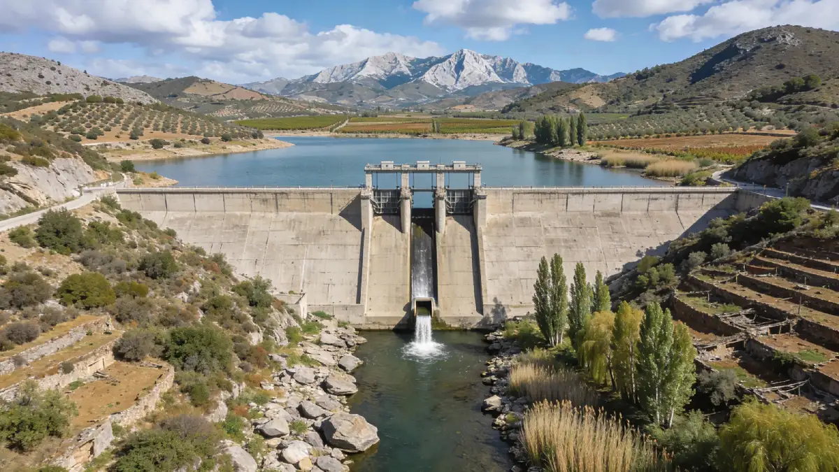 La presa de Cerro Blanco aparece como infraestructura asociada, concebida para laminar avenidas e incrementar la garantía de recursos en un contexto de creciente demanda hídrica en Málaga y la Costa del Sol.