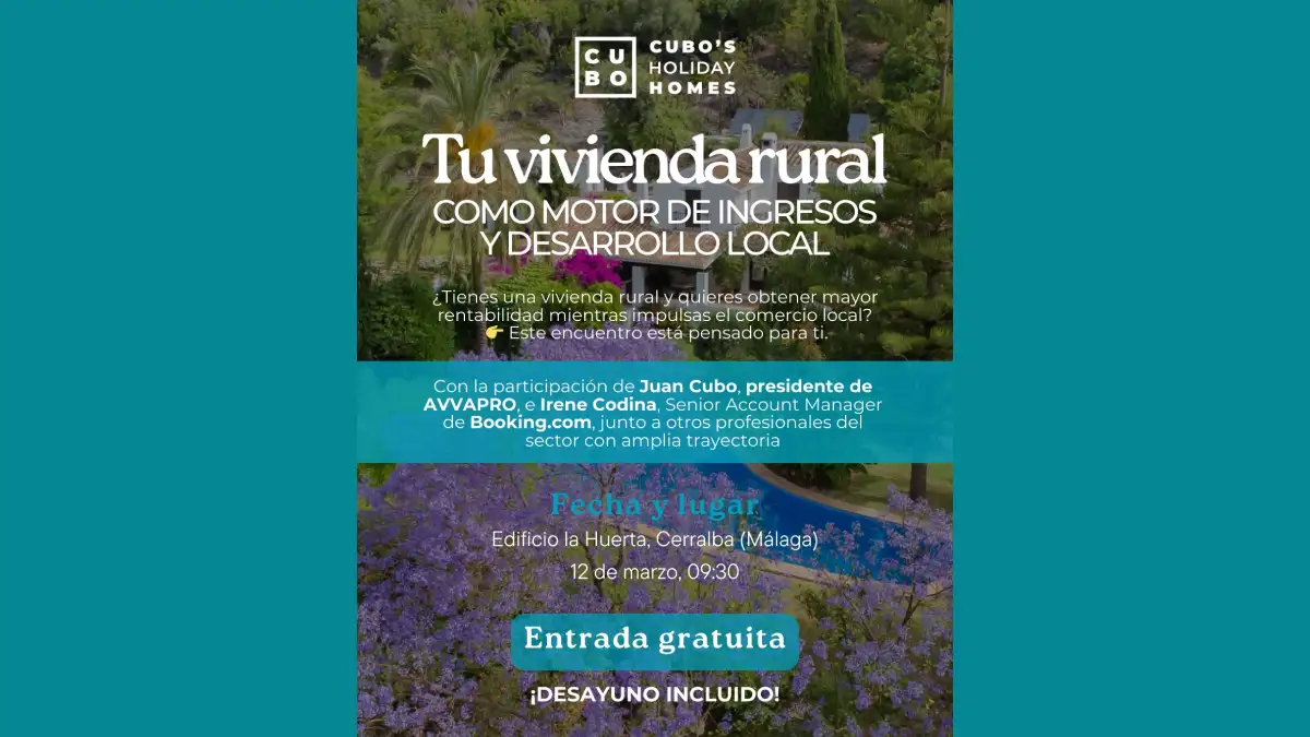 La jornada “Vivienda rural como motor de ingresos” se celebrará el 12 de marzo a las 9:30 en el Edificio La Huerta de Cerralba, en el municipio malagueño de Pizarra. Será un encuentro formativo dirigido a propietarios de casas rurales y villas que quieren profesionalizar su alquiler vacacional y reforzar el turismo rural de la comarca. A lo largo de la mañana se abordarán tendencias del sector, normativa, visibilidad online y estrategias de precios para sacar más rendimiento a cada temporada. Actualizado a 25 de febrero de 2026.